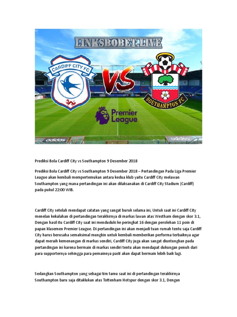 Bursa Pasaran Handicap Agen Bola Terpercaya : Prediksi Bola Cardiff City vs Southampton 9
