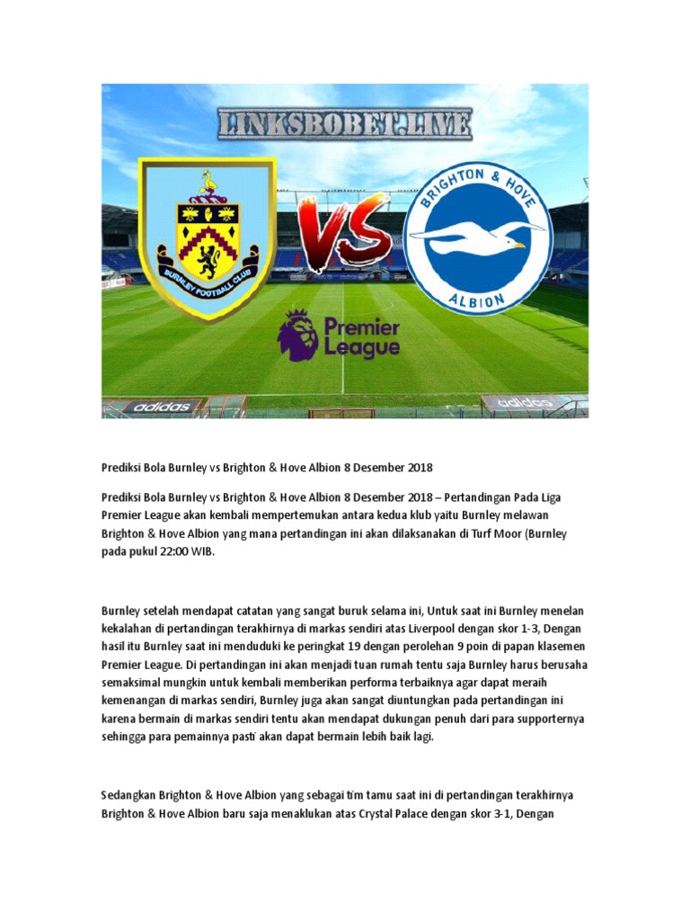 Bursa Pasaran Handicap Agen Bola Terpercaya : Prediksi Bola Burnley vs Brighton & Hove Albion