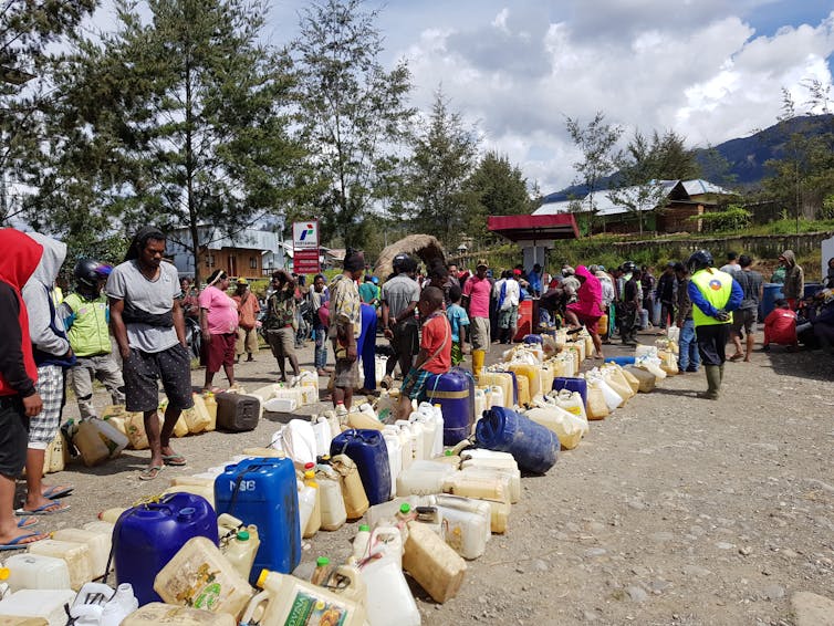 Queuing for single price fuel in Ilaga District, Papua.Author provided